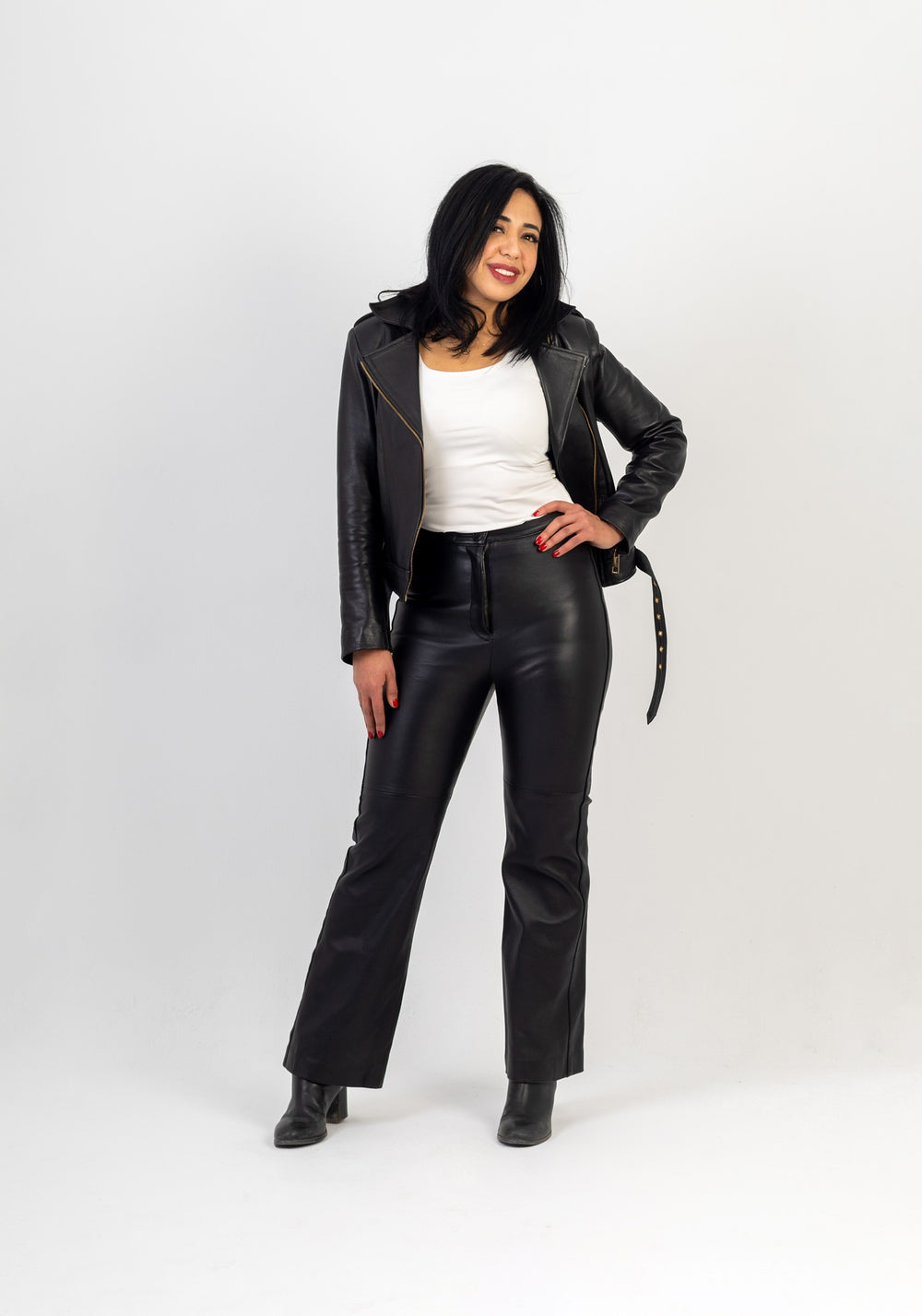 Crafted from 100% Italian full-grain leather, these pants are bold, durable, and timeless. With a sleek front-line detail and a modern fit, they’re designed to elevate any look while aging beautifully with wear